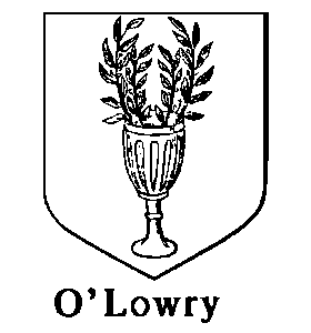 * The above Coat of Arms and text on O'Lowry are from "Book of Irish Families, great and small" by O'Laughlin, page 182. Used with permission from Irish Genealogical Foundation.